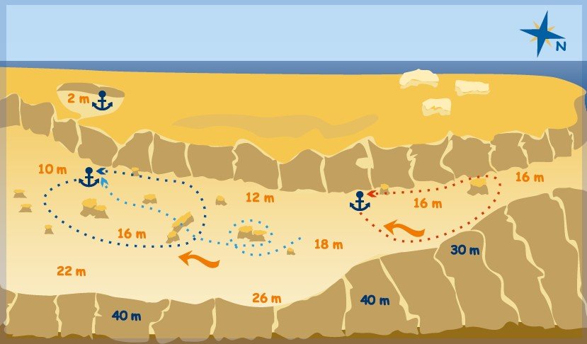 The 3 km long reef, due to its length we have 2 locations El Fanadir North and South. Along the wall there is a sandy plateau, narrow at the beginning, but gradually widening in the southern direction. The plateau ends with a drop-off. The reef is interesting because of the variety of underwater animals that can be found here: there are many lionfish, scorpionfish, stonefish, different types of moray eels, octopuses hidden in the wall. We can do an easy current dive here, where the current carries us from north to south.