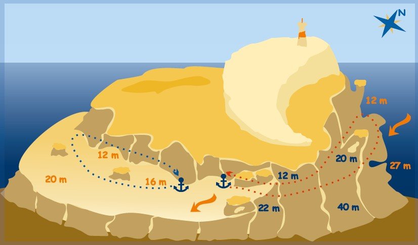 A diving site located near an island in the shape of a crescent moon. It is surrounded by a shallow plateau on the south side, but usually divers head across the plateau in an eastern direction to the deep wall. Along the way, they pass large coral blocks overgrown with both hard and many soft corals inhabited by schools of fish. Three coral towers rise from the deep wall. In the first of which there is a cave inhabited by a large school of glass fish and smaller species of groupers. In the second tower, if we dive down to 28 meters, it is possible to swim into a cave. The place is suitable for both beginners and advanced divers. The more experienced can jump on a drift dive, which starts above a deep wall and will end on a shallow flat. On the reef it is often possible to meet large moray eels or even a turtle. It is also possible to make pick-up drift on North Umm Gamar.